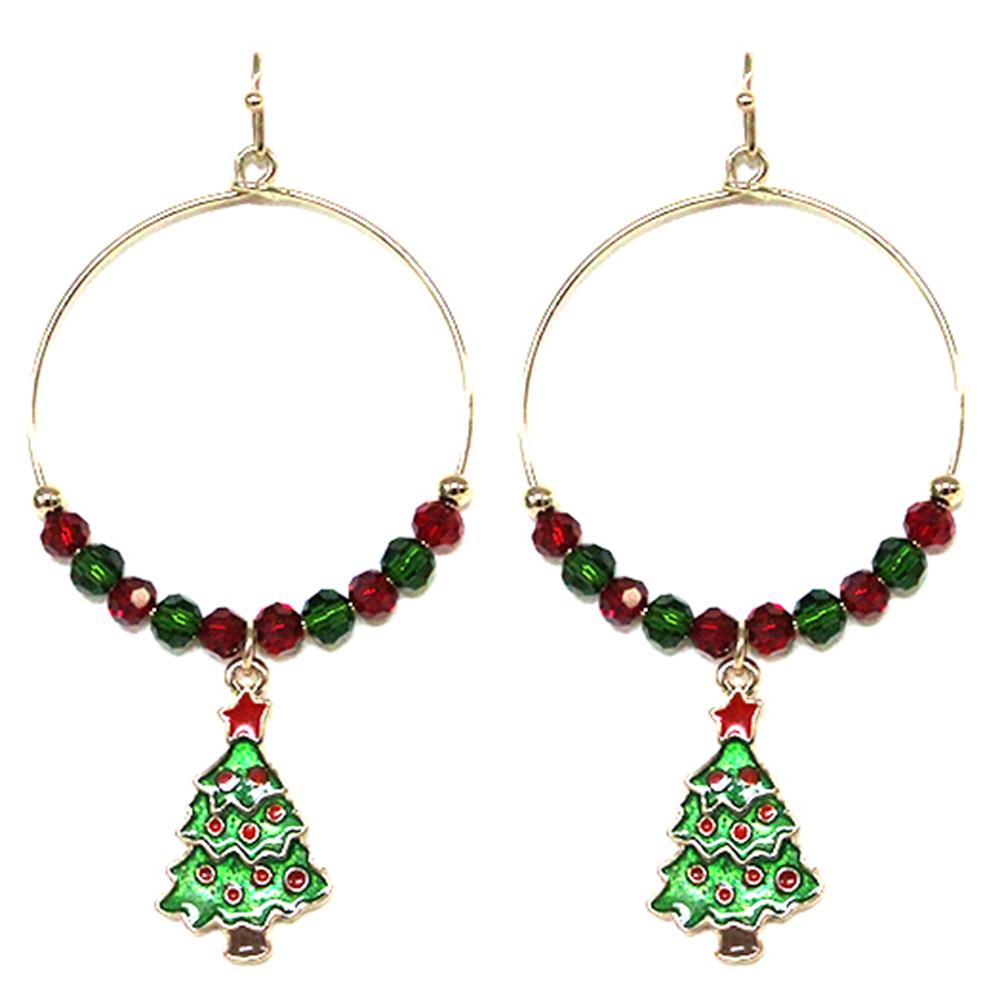 SEED BEAD ROUND CHRISTMAS DECO DANGLE EARRING