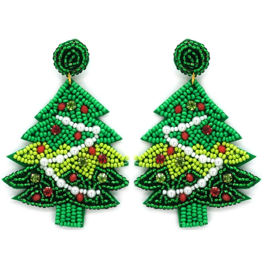 SEED BEAD CHRISTMAS TREE EARRING
