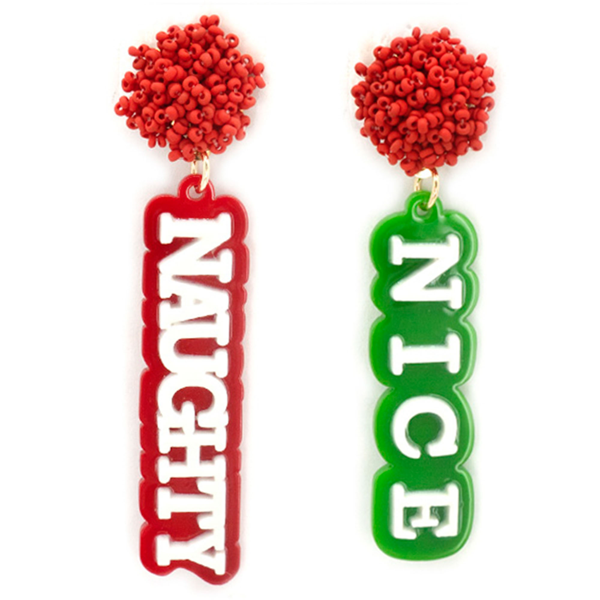 CHRISTMAS NAUGHTY AND NICE RHINESTONE SEED BEAD EARRINGS