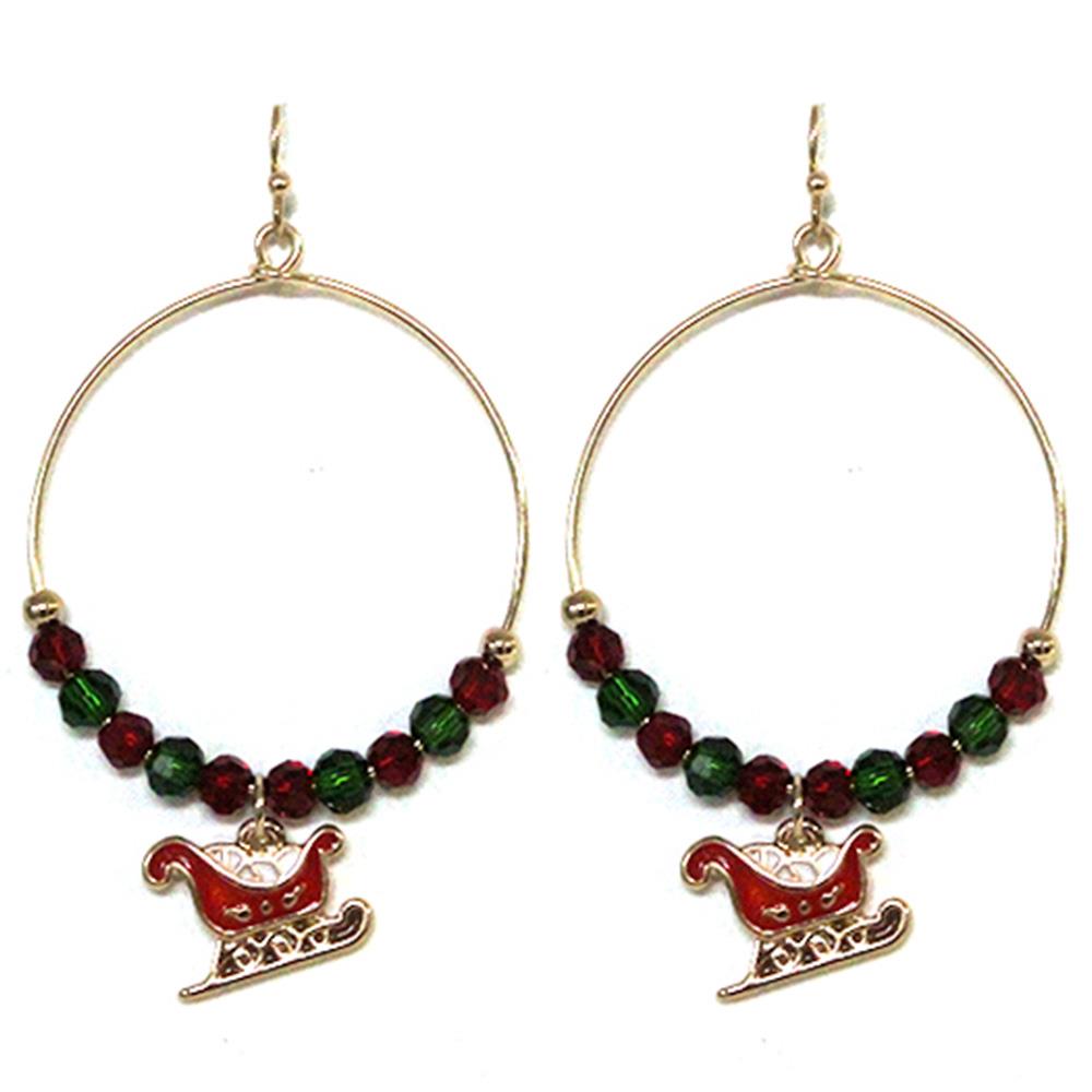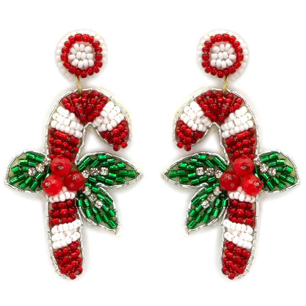 CHRISTMAS SEED BEAD SWEATHER DANGLE EARRING