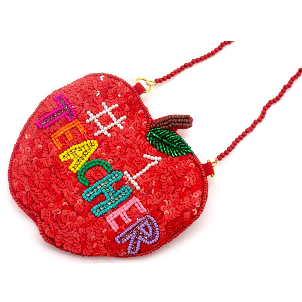 SEED BEADED SUPER TEACHER ZIP COIN PURSE BAG