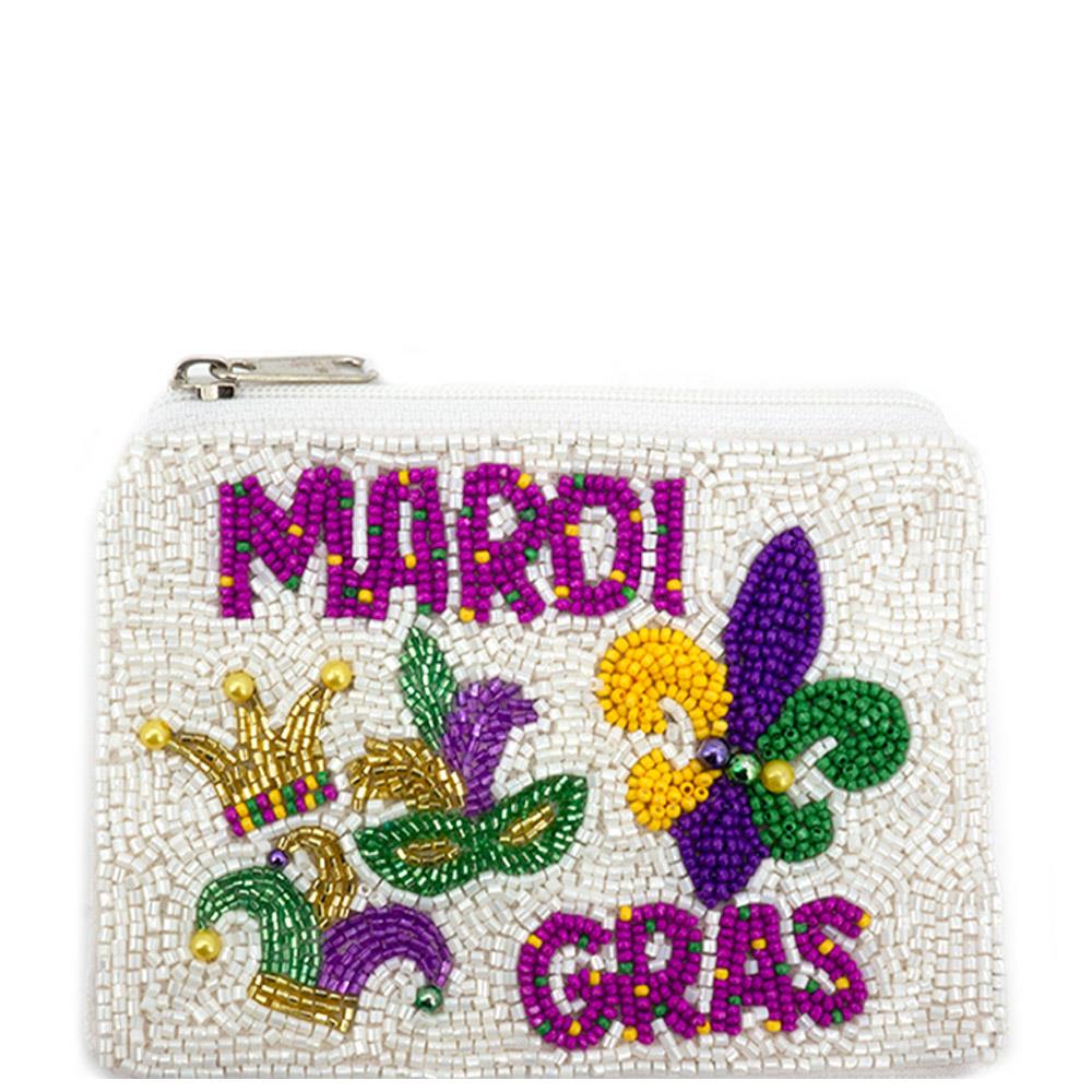 MARDI GRAS LETTER GRAPHIC SEED BEAD COIN PURSE BAG