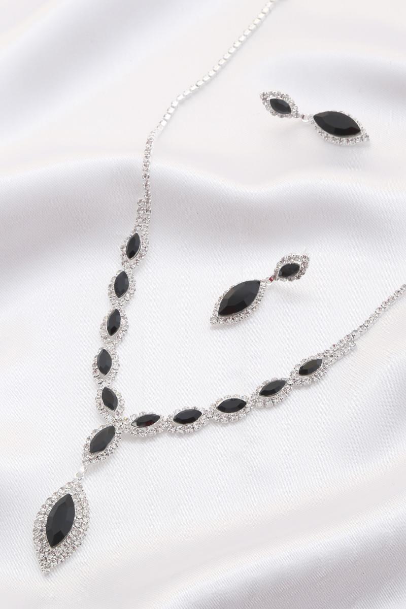 MARQUISE SHAPE RHINESTONE NECKLACE AND BRACELET SET