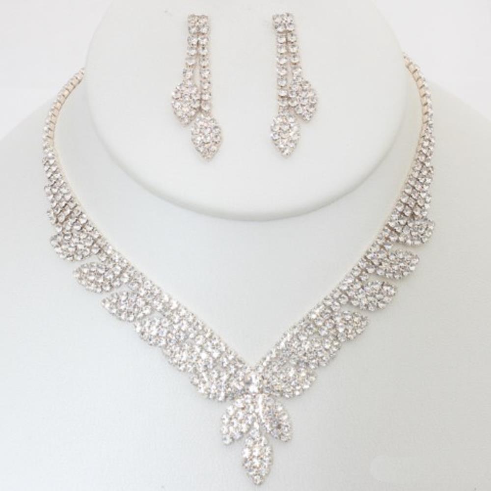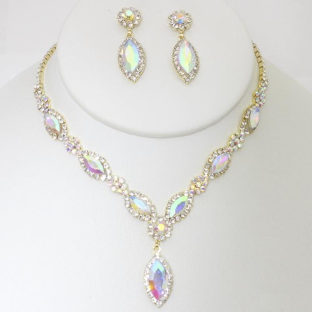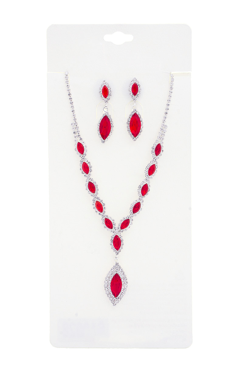 RHINESTONE MARQUISE PEAR SHAPE NECKLACE EARRING SET