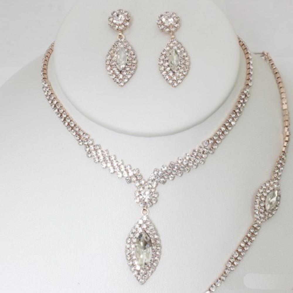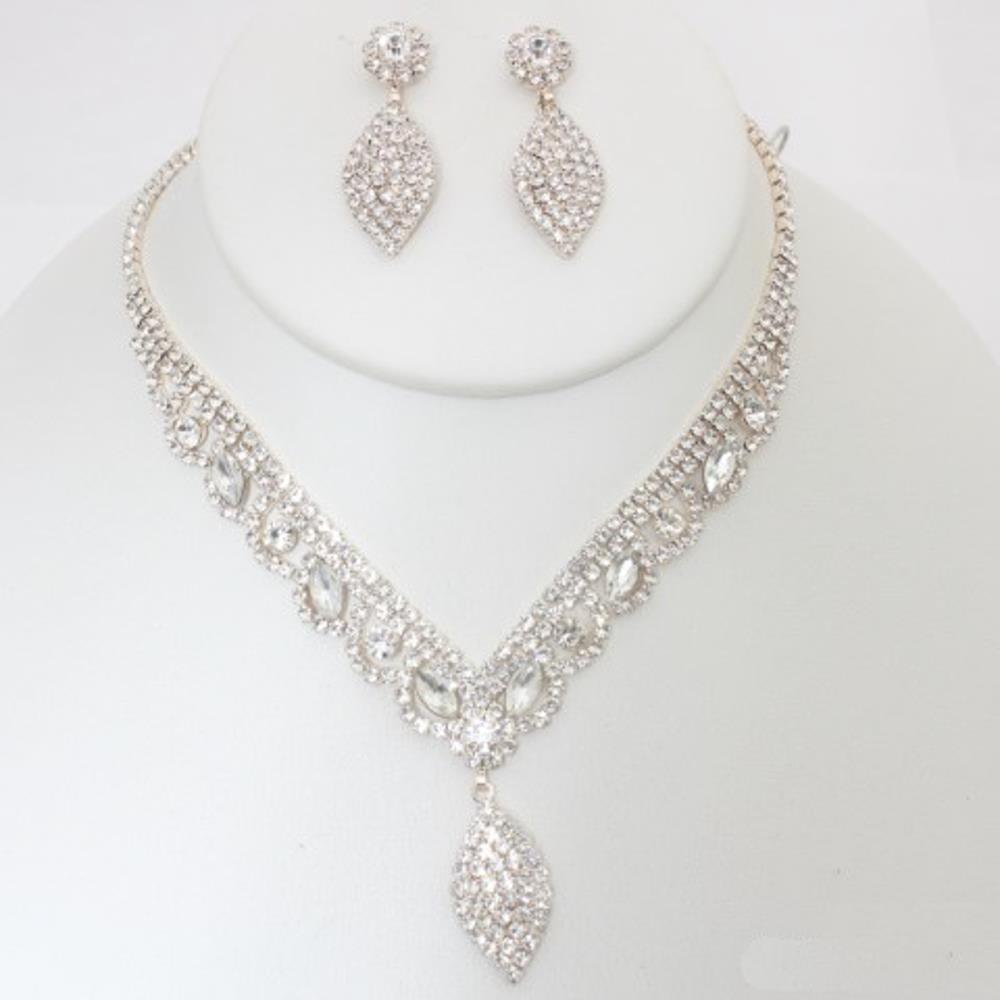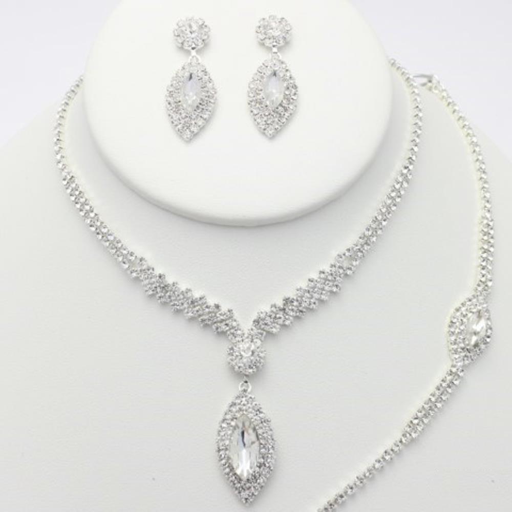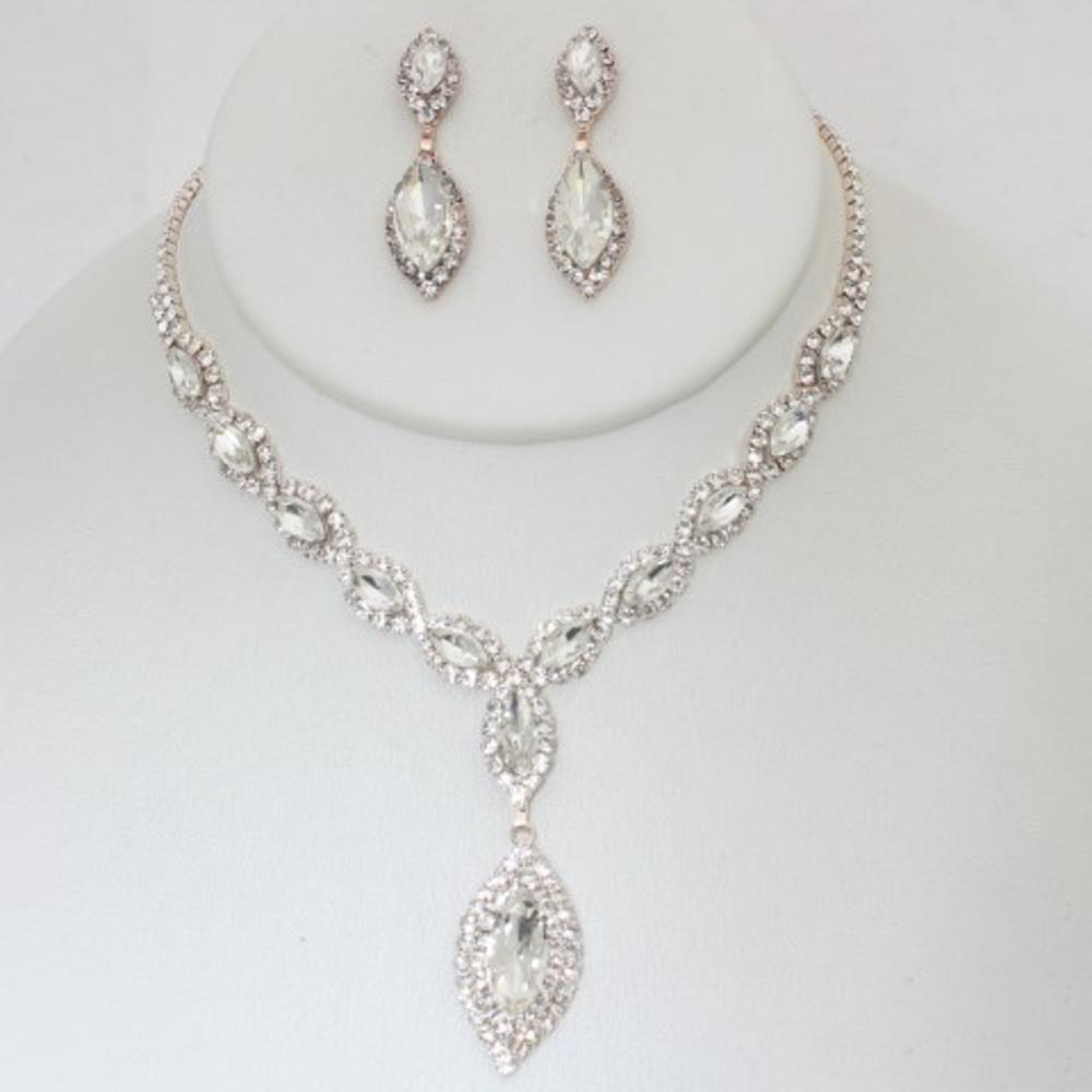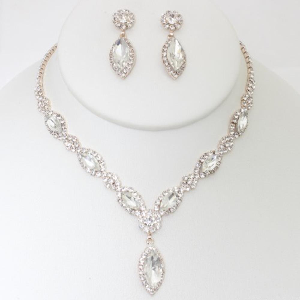 RHINESTONE MARQUISE SHAPE BRIDAL SET NECKLACE