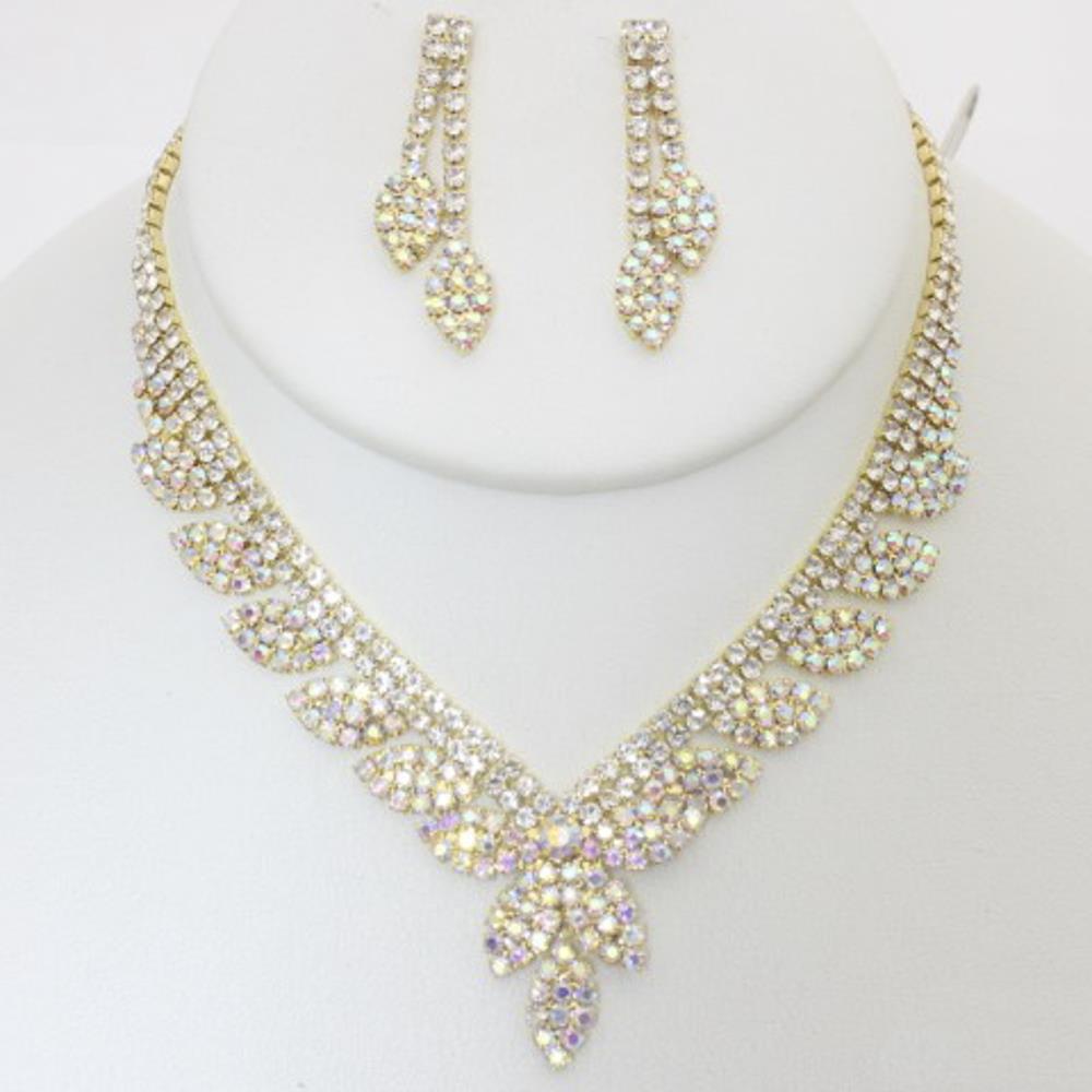 CRYSTAL STONE RHINESTONE NECKLACE EARRING SET