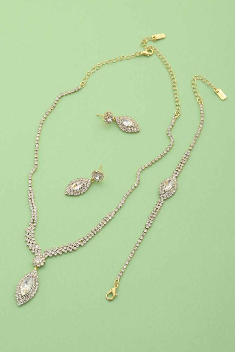 MARQUISE RHINESTONE NECKLACE AND BRACELET SET