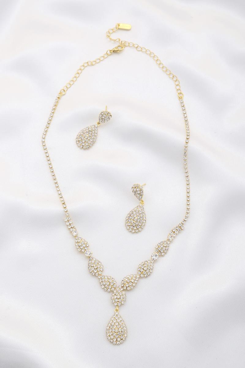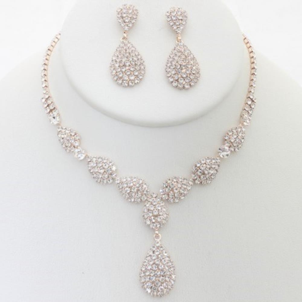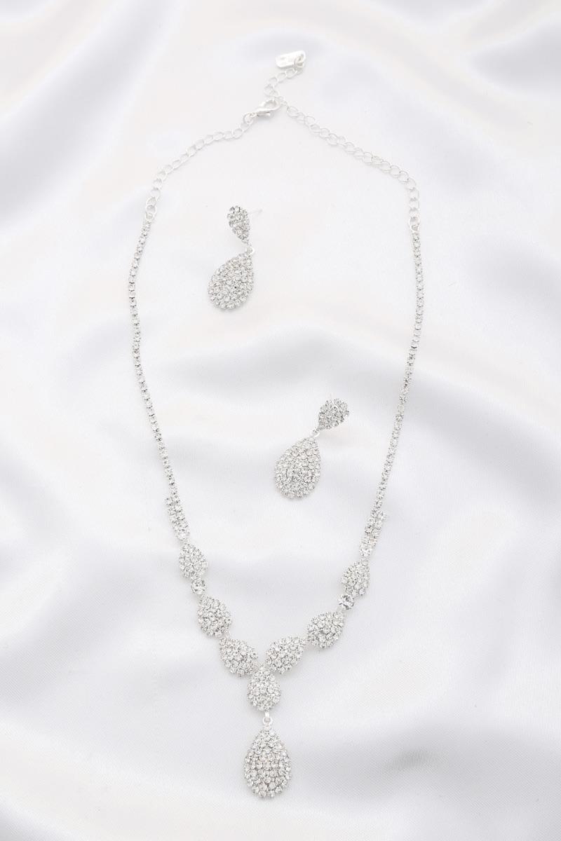 RHINESTONE TEAR DROP NECKLACE AND EARRING SET