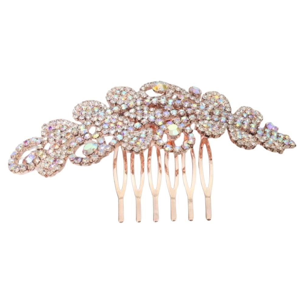 RHINESTONE FLORAL LEAF CLUSTER METAL HAIR COMB