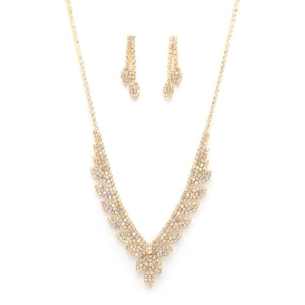 V SHAPE RHINESTONE NECKLACE AND BRACELET SET