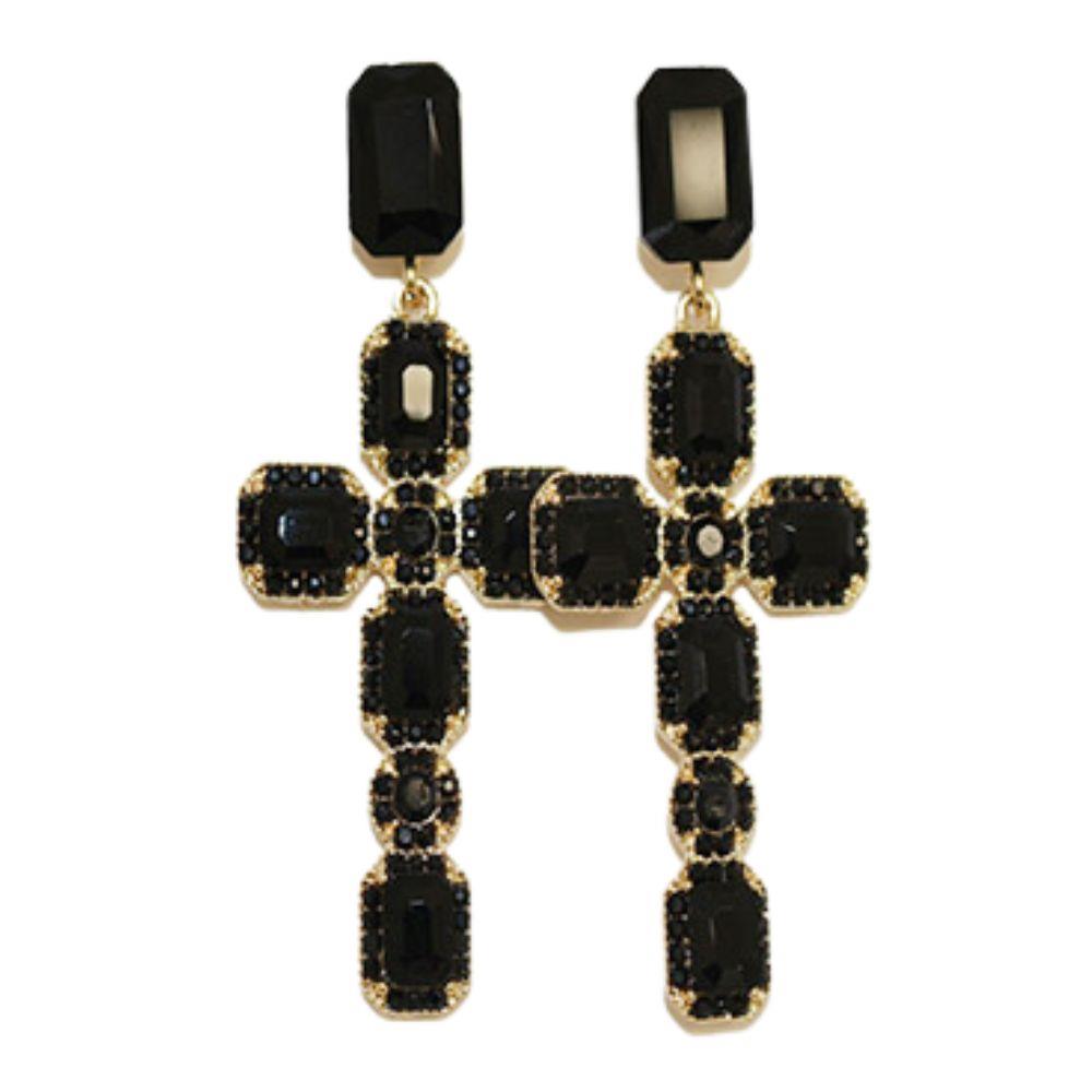 CROSS FLOWER RHINESTONE DANGLE EARRING
