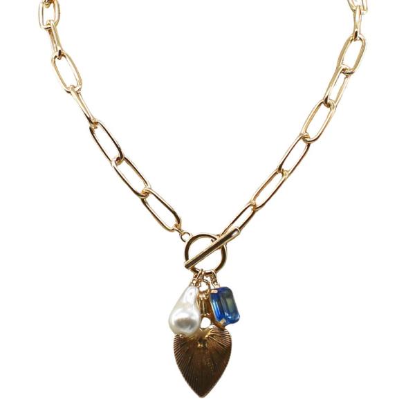 Sodajo Double Key Charm Oval Link Layered Necklace