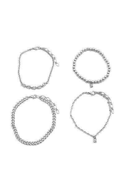 Fashion Metal Bead Chain Link Crystal Bracelet Set