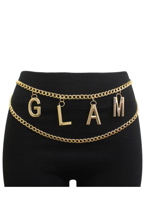 Glam Initial Message Dangle Waist Metal Belly Body Chain Belt