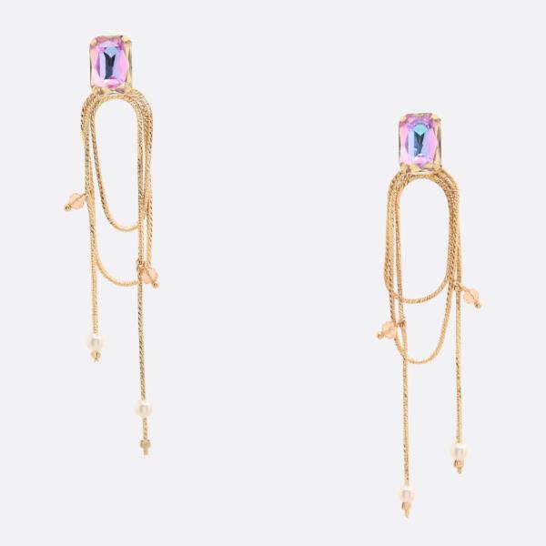 Gold Chain Drop Earrings With Crystal And Pearl Details