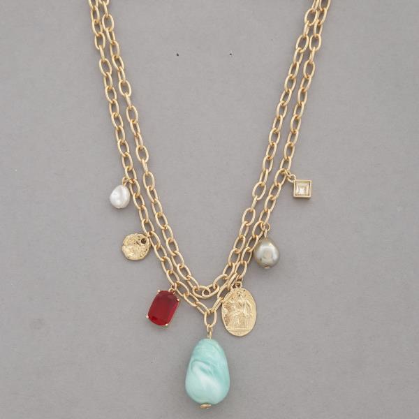 Oval Pendant Multi Charm Necklace