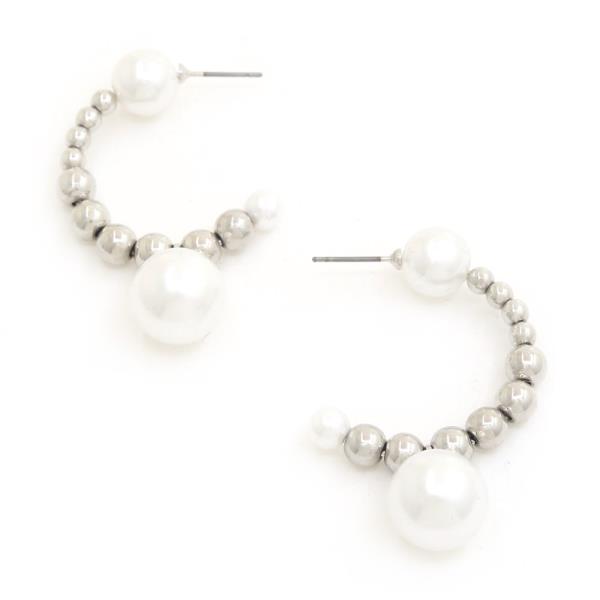 Pearl Ball Bead Open Hoop Earring