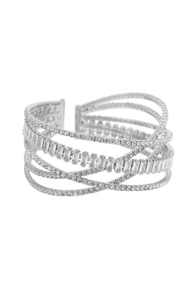 Rhinestone 5 Line Cuff With Baguette Crystal Bracelet
