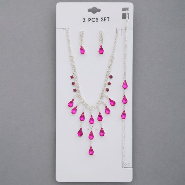 Rhinestone Teardrop 3P Necklace Earring Bracelet Set