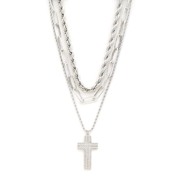 Sdj Rope Oval Link Cross Pendant Necklace