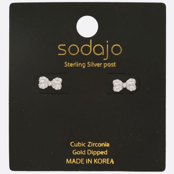 Sodajo Dainty Bow Cz Gold Dipped Sterling Silver Post Earring