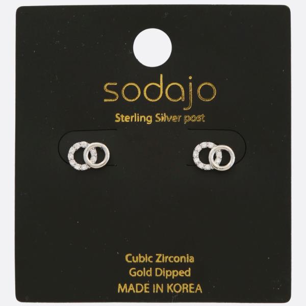 Sodajo Double Circle Cz Gold Dipped Sterling Silver Post Earring