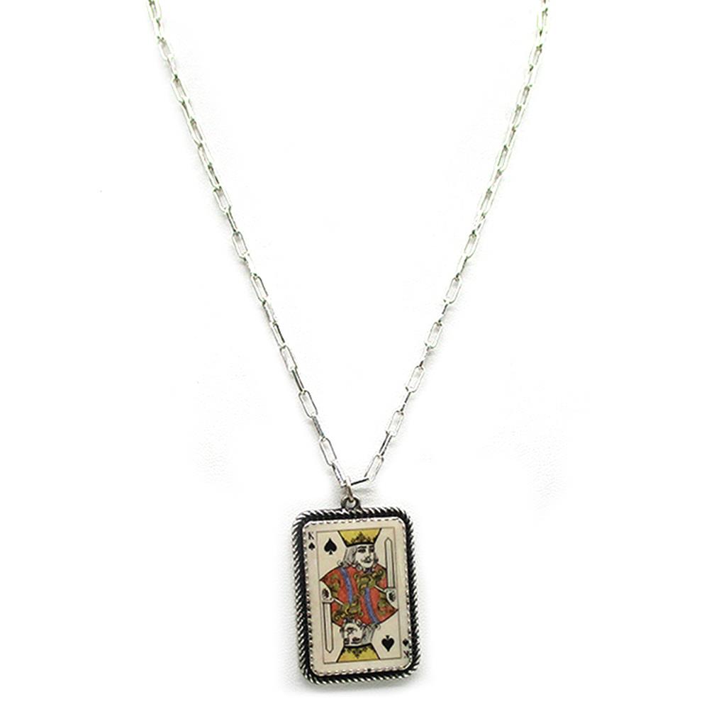WESTERN VINTAGE K CARD GRAPHIC PENDANT NECKLACE
