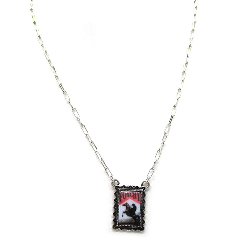 WESTERN RECTANGLE ART COWBOY PUNCHY CHAIN NECKLACE