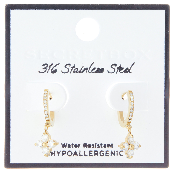 STAINLESS STEEL FLORAL PAVE HUGGIE EARRING
