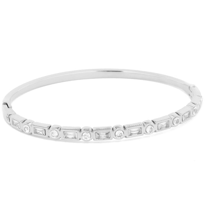 STAINLESS STEEL FLORAL CZ OPEN BANGLE BRACELET