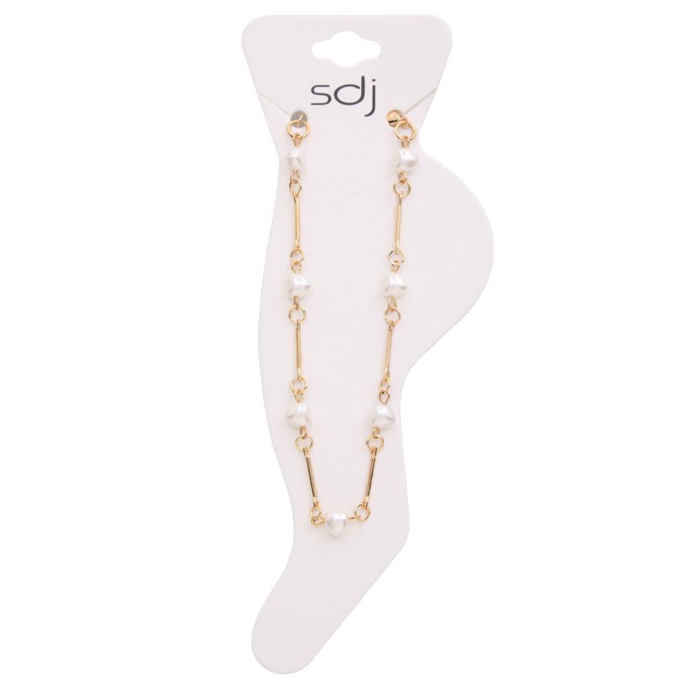 SDJ HEART PEARL CHARM METAL CHAIN ANKLET