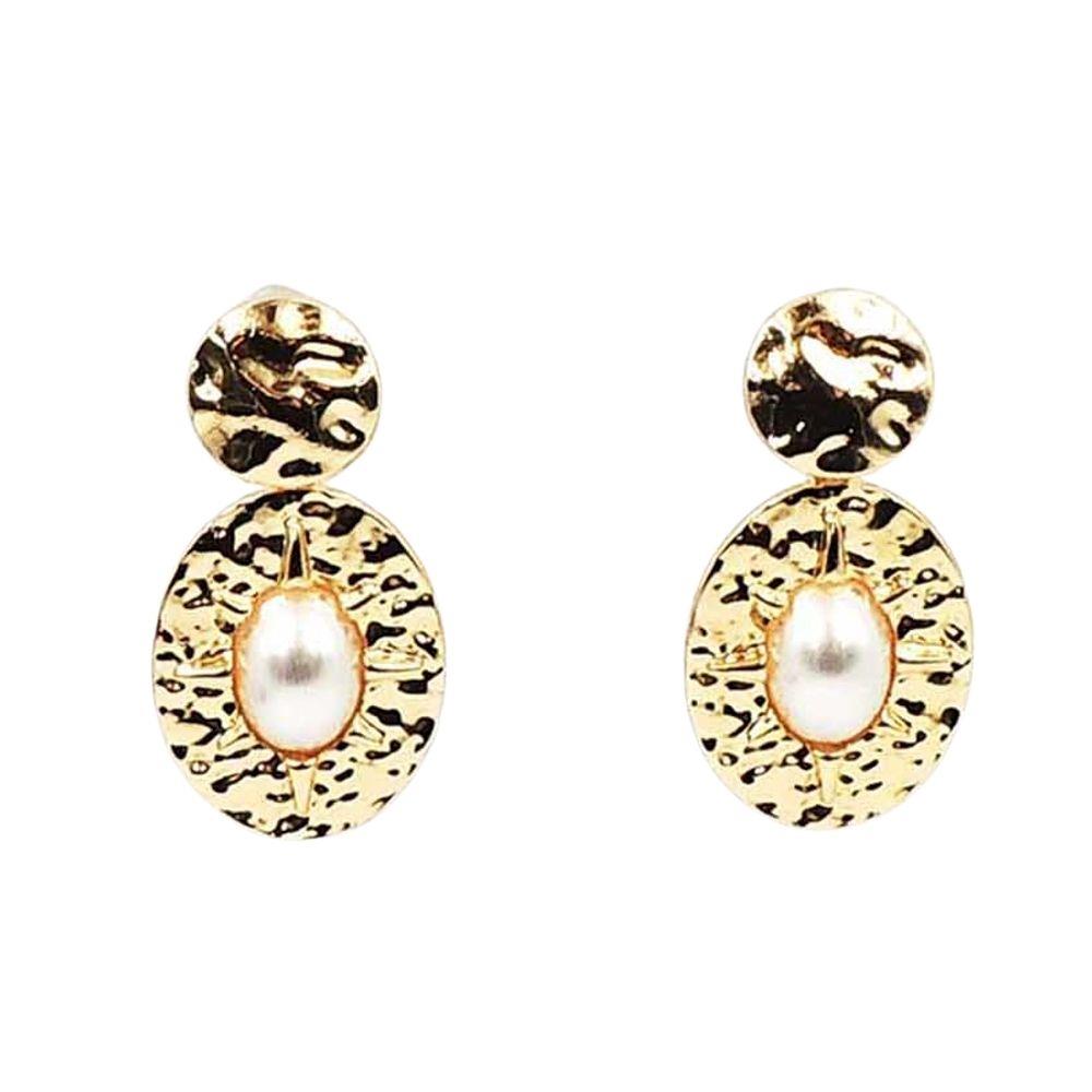 PEARL OVAL HAMMER DANGLE EARRINGS
