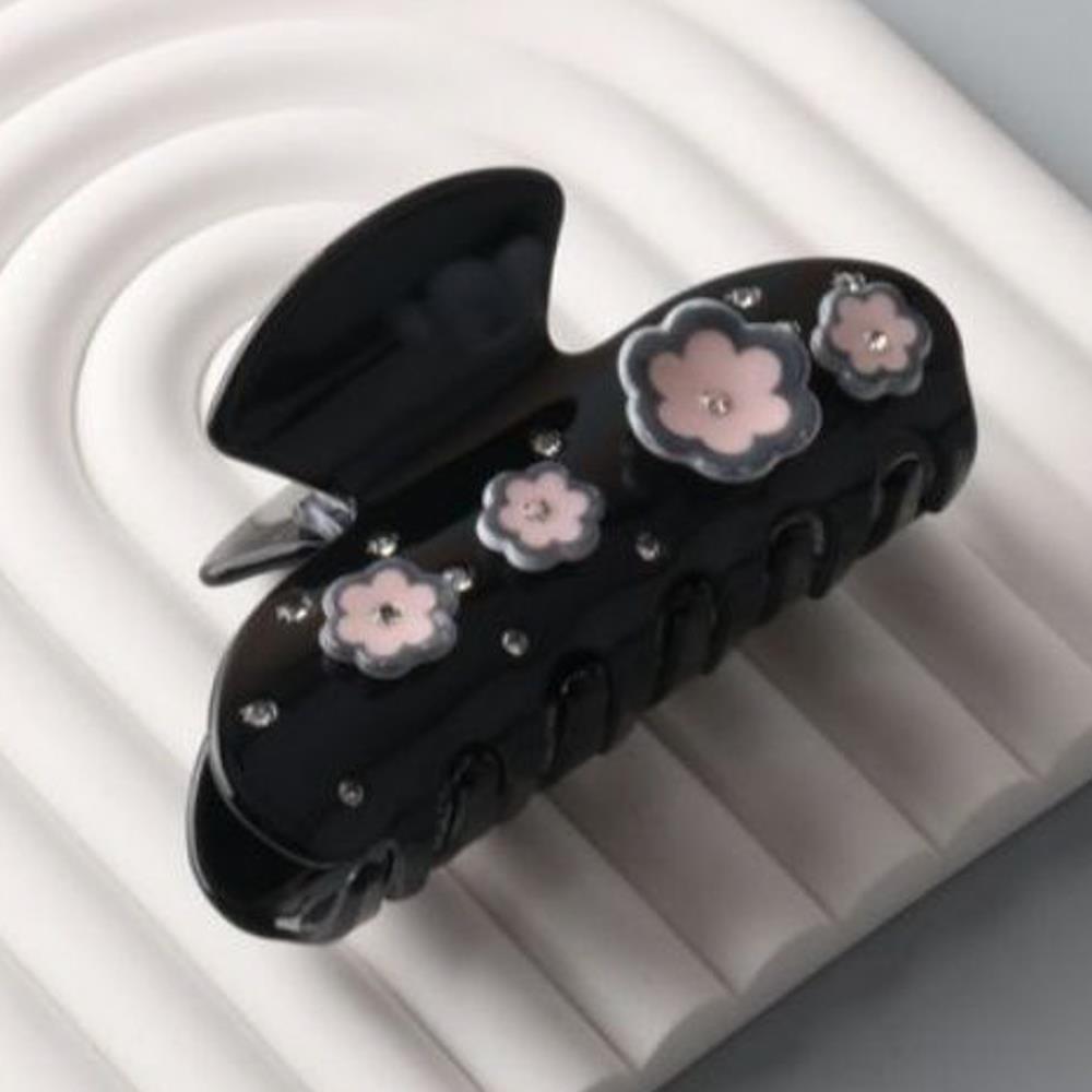 ACRYLIC RHINESTONE FLOWERS CLAW CLIP