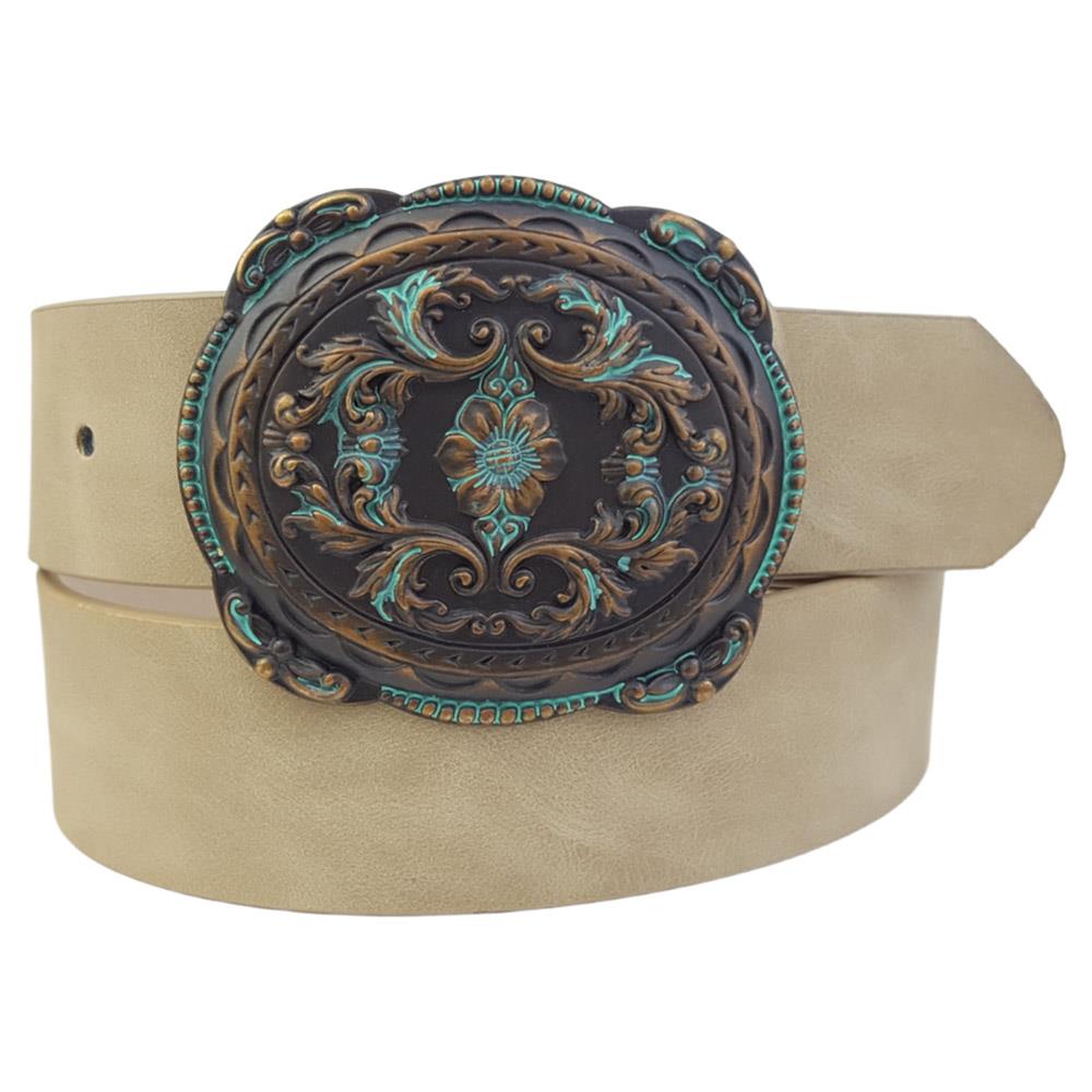 WESTERN FLORAL ETCHED BUCKLE BELT