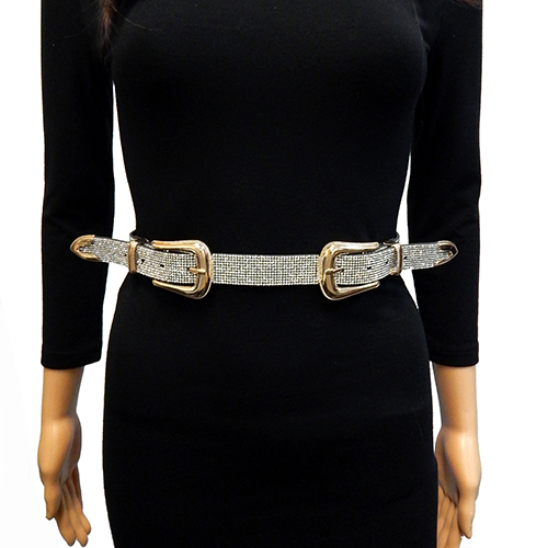 DOUBLE BUCKLED WESTERN RHINESTONE BELT